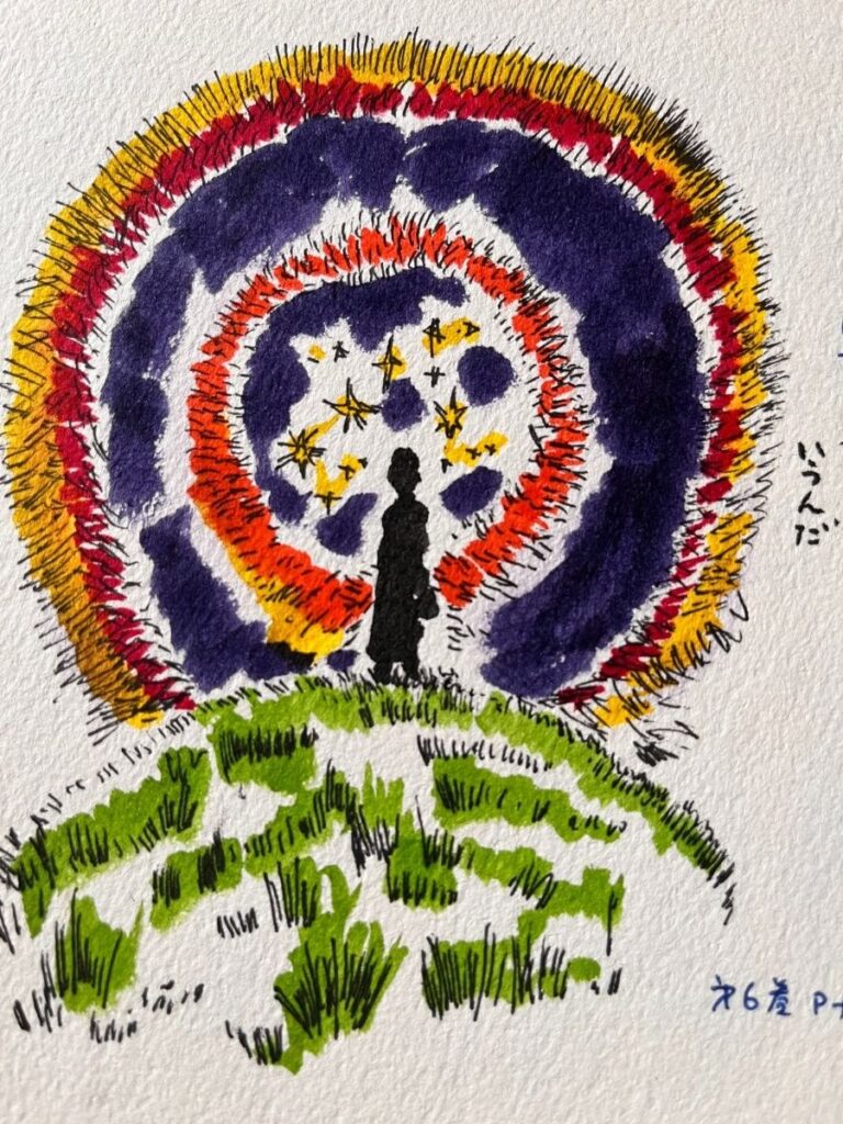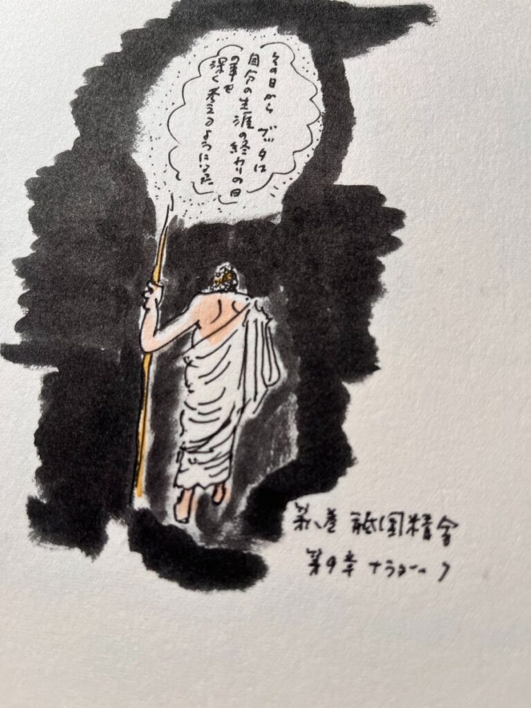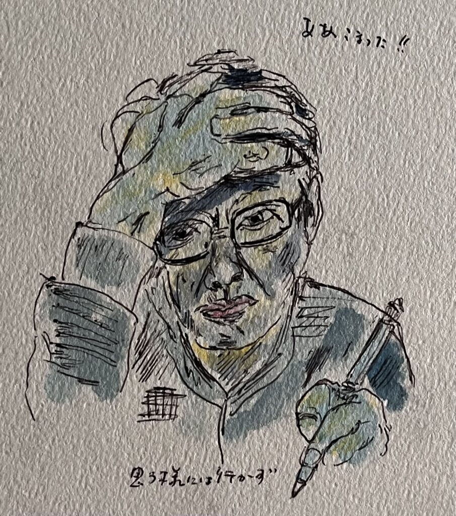 reminiscence(追憶)& from now(これから)ブログ 母の写真は いつも笑顔だとなりの私も ずっと笑顔だもう3年母と息子は ずっと笑顔だ2017.7.6 ブログ 目を閉じると深淵なるブッダの世界が真っ黒な空間に広がりはじめる。 どうやら、時折、思い立って、突然、自画像を描いてるんだな。そうだねぇ、困った時かな? フーテンの寅さんは誰にも憧れの人? わたくし、なぜか寅さんに惹かれるんだなあ! 旅を考える時は必ず、寅さんだ。寅さんの四角い顔と四角いカバン🧳が自然と浮かんでくるんだな。 俺がちゃんとチェックしとるぞ!こころの垢を払拭しなさい!と忠告してくれる。 今年も皇帝ダリア地上から3〜4m上空の寒空にめげずにいつも凛としてるね。パワーをいただきます。 近くの西方寺さんのカリンの実、いつも感心しています。それにしても毎年、立派な実を付けるな。 柚子今年は豊作でした。例年になく多くの人にお裾分けできました。 金柑の実も大粒で豊作だ。 本宮ひろ志のマンガ「大と大」から大州橋のたもとにあるお好み焼き屋で待ち時間にスケッチして自宅で色付けしたピクチャー。姿勢と目力にひかれて。前を向け、さがるな、前を向け!と言っているようで。 12.21(日)、pm3:30〜RC C広島テレビ2025.ヒロシマ第九の再放送。本番は14日でした。2年前の参加を思いだしながらテレビ📺を視聴した。2026年に再びチャレンジしてみます。 2025.12.25(木)メリークリスマス🎄🎁動物病院🏥ロビー賑やか。 ただ今放映中、NHKK連続ドラマ「ばけばけ」日毎、深まってくる。朝ドラにはまってる。 金柑の木🌲の下で寒さ避け、グリーンピースが元気に頑張ってるね。 青梗菜🥬(チンゲンサイ)実に若々しい 春告げ花の水仙さん蕾みを包んでる包葉が出てきてる。 今年一年、色々な事があって、あっという間でした。来年もよろしくお願いします。いいお年をお迎えください。 令和7年12月25日(木) 記